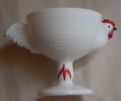 VINTAGE MILK GLASS ROOSTER CHICKEN FOOTED SHERBERT CUSTARD EGG CUP FIGURAL