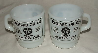 Vintage Galaxy Texaco Gas Oil Milk Glass Mugs Advertising 70's Wayland, Iowa