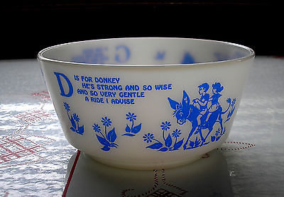 Title (ebay affiliate link): HAZEL ATLAS MILK GLASS BLUE LETTERING D G H ALPHABET CHILD'S BOWL