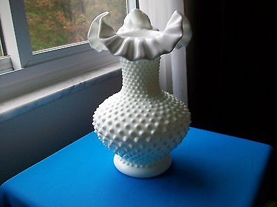 Vintage Fenton White Milk Glass Hobnail Large Vase 10"