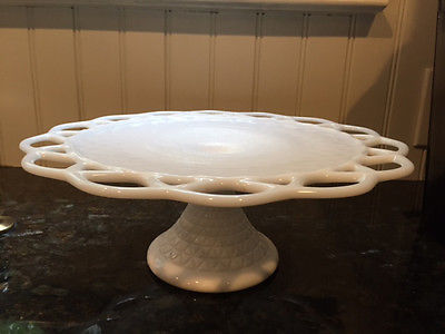 Pedestal Cake Stand & Plate White Milk Glass LACE EDGE