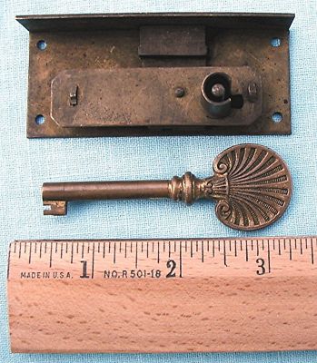 Title (ebay affiliate link): Early Solid brass Victorian Cabinet lock and fancy key