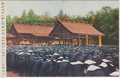 Antique Postcard / Girls Praying to First Emperor / Japanese / c. 1919