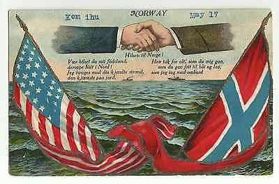 1906 PETERSON BOSTON SERIES HANDS ACROSS OCEAN USA-NORWAY FLAGS GLITTER POSTCARD
