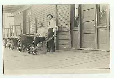 1910 RAILROAD TRAIN DEPOT"BADGER"2-GUYS HAND CART CAMERA REFLECT PHOTO POSTCARD
