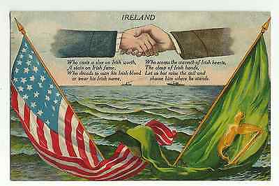 1906 PETERSON BOSTON SERIES HANDS ACROSS OCEAN USA-IRELAND FLAGS POSTCARD
