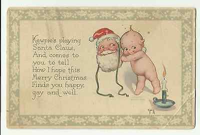 1930 ROSE O'NEILL SIGNED KEWPIE SANTA MASK CANDLE CHRISTMAS GIBSON POSTCARD