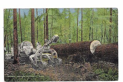 Vintage Postcard Modern Logging "Cat" Tractor At Work E. C. Kropp Linen Era