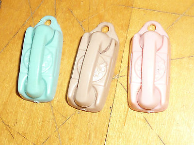 Vintage KEY-CHAIN STARLITE Telephone 1960's lot of THREE blue beige and pink!