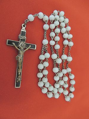 RARE ANTIQUE MILK GLASS BEADS NUN'S ROSARY