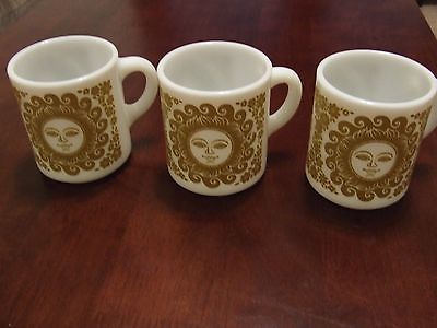 Title (ebay affiliate link): ~ Three ~ 3 Vintage Milk Glass Coffee Mug Sunshine Retro Gold Golden Flowers