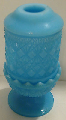 PRETTY POWDER BLUE MILK GLASS FAIRY LAMP W/DIAMOND DESIGN
