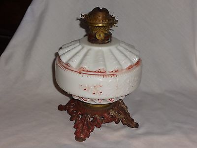 Antique Victorian Ruffled Milk Glass Footed Base Miller Oil Lamp Banquet Table