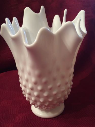 Fenton Hobnail Milk Glass Handkerchief Swung Vase