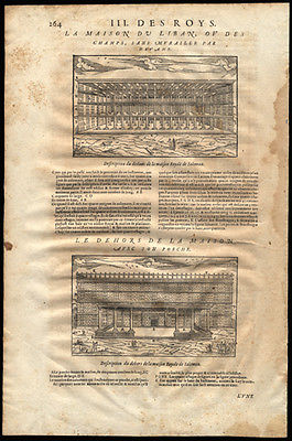 Title (ebay affiliate link): 1581 Catholic Bible Leaf 3rd Kings Chap 7 2 Woodcuts of Solomon's Temple Masonic