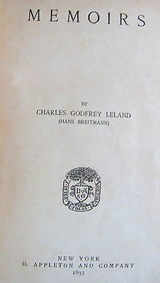 Memoirs of Charles Godfrey Leland 1893 HB 1st Ed Lt. 118th Penn. Reg. Civil War
