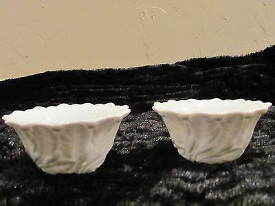 Vintage Small Milk Glass Bowls Set of 2 Leaves and Flowers Design