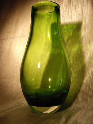 THICK HAND BLOWN GREEN VASE