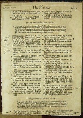 1568 1ST EDITION BISHOPS BIBLE LEAF/RARE/PSALMS/WOODCUTS/THE MERCY CHAPTER!