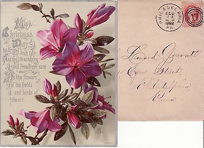 1882 Meissner & Buch CHRISTMAS Card w/ Original Envelope~C. KLEIN Flower Artwork
