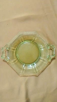 Title (ebay affiliate link): Vintage Green Rose Embossed Depression Glass 7" candy/nut tray with handles