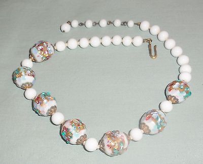 VINTAGE COLORFUL ART GLASS MILK GLASS BEAD SINGLE STRAND CHOKER NECKLACE