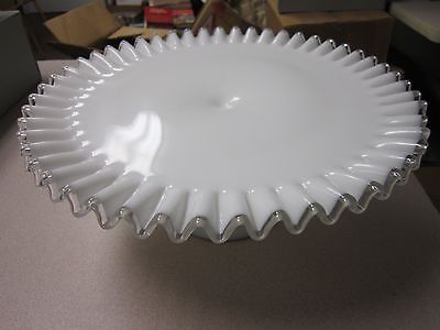 VINTAGE FENTON RUFFLED SILVER CREST MILK GLASS PEDESTAL CAKE PLATE