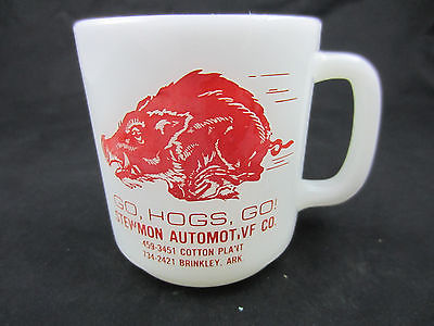 vintage Arkansas Razorbacks Glasbake milk glass mug Brinkley Cotton Plant ARK