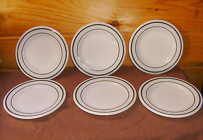 6 CORNING MILK GLASS GREEN STRIPES / BANDS SIDE PLATES