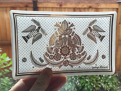 Vintage Signed Georges Briard Milk Glass Tray/Dish PEACE & LOVE Dove Bird Branch
