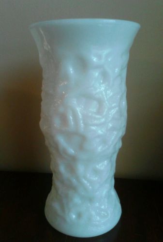 Title (ebay affiliate link): Milk Glass! Gorgeous 9 1/2" Vase in Heavily Textured Vine Pattern by E. O. Brody