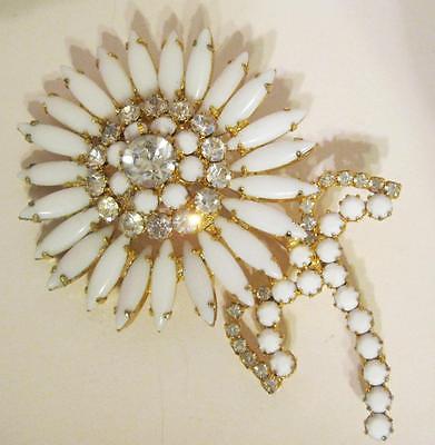 WEISS FABULOUS VINTAGE FLOWER PIN MILKGLASS STONES IN GOLD TONE SETTING