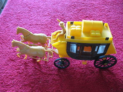 PLASTIC PLAYSET WESTERN STAGECOACH WITH HORSES & DRIVER