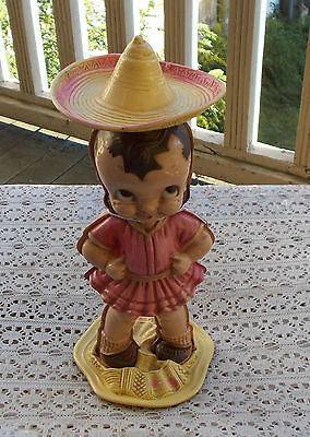 RARE Vintage 9.5" Mexican Doll Little Girl Wind Up Toy Spinning Hat Sombrero NR