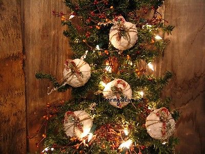 ~5 Primitive Rag SNOWBALLS Balls Chenille CANDY CANE Christmas Ornie Bowl Filler