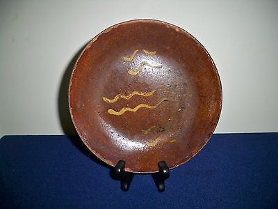 Antique 19th C Stoneware Redware Pennsylvania Slip Decorated Dish Plate 7 3/8"