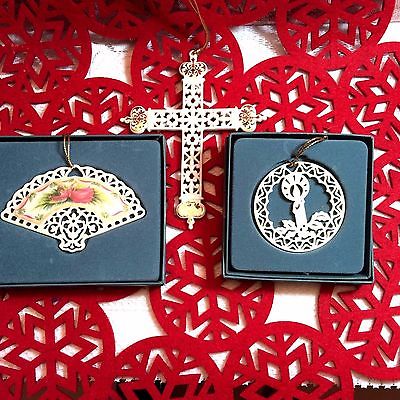 3 Lenox Christmas ornament, Angel on Fan, Circle Candle and Cross