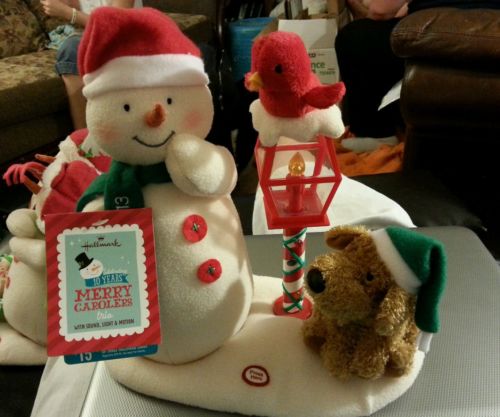 Title (ebay affiliate link): Hallmark Keepsake Plush Merry Carolers Trio Snowman & Dog w Sound LIGHT & Motion