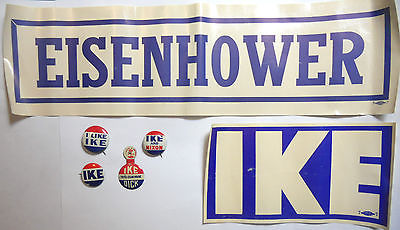 1950s DWIGHT EISENHOWER - RICHARD NIXON PRESIDENTIAL CAMPAIGN STICKERS & 4 PINS