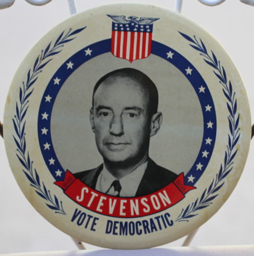 Title (ebay affiliate link): Adlai Stevenson Large Vote Democratic Presidential Campaign Pin Pinback