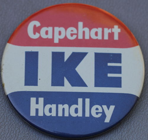 Title (ebay affiliate link): Eisenhower Ike Capehart Handley Presidential Campaign Pin Pinback