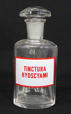 Title (ebay affiliate link): ANTIQUE APOTHECARY PHARMACY DRUG STORE GLASS BOTTLE JAR TINCTURE HYOSCYAMUS SIGN