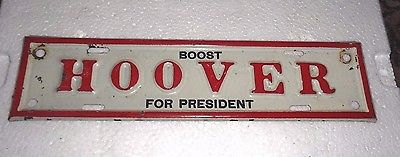 Title (ebay affiliate link): VINTAGE Original BOOST HOOVER FOR PRESIDENT LICENSE PLATE TOPPER, SIGN al smith