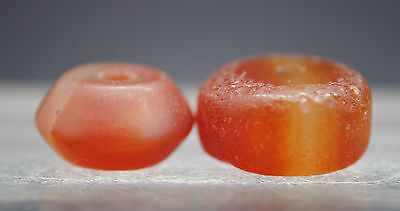 TWO LOVELY ANCIENT EGYPTIAN FACETED CARNELIAN STONE BEADS