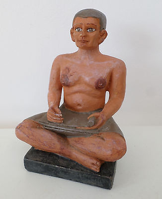 VINTAGE REPLICA ANCIENT EGYPTIAN FIGURINE seated scribe, hand painted