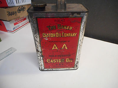 L173- Vintage Baker Castor Oil Company Tin 8 (Eight) Pounds Net Bayonne, NJ
