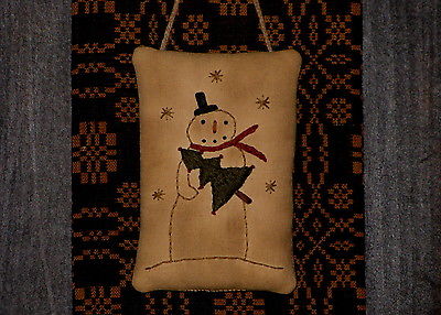 Hand Stitched Primitive Stitchery Pillow/Ornament ~ Snowman With Christmas Tree