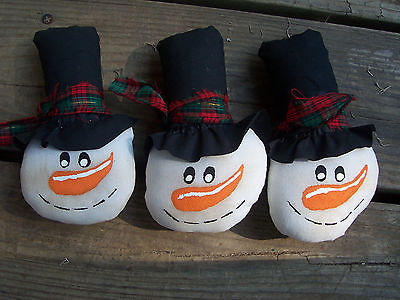 Primitive Christmas Winter Grungy Snowmen Ornies Bowl Fillers Decor Set Of 3