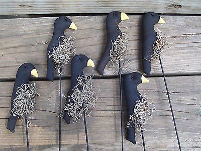 Primitive Halloween Fall Black Crow Ornies Pokes Crock Fillers Decor Set of 6