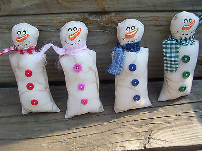 Primitive Grungy Christmas Snowmen Ornies Bowl Fillers Decor Set of 4
